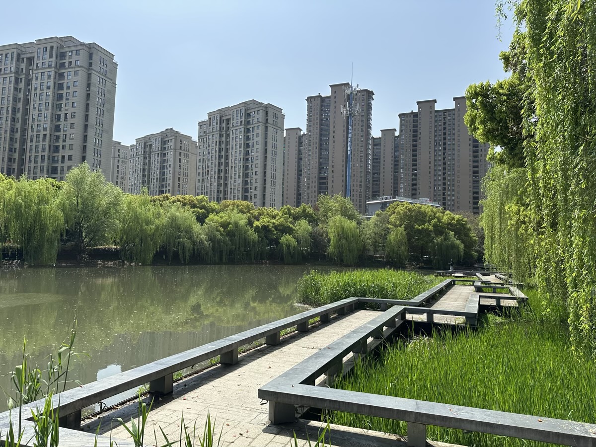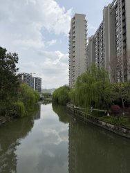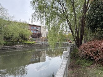 The Linping canal and riverside area is looking idyllic in spring time with the cherry blossoms in bloom.
